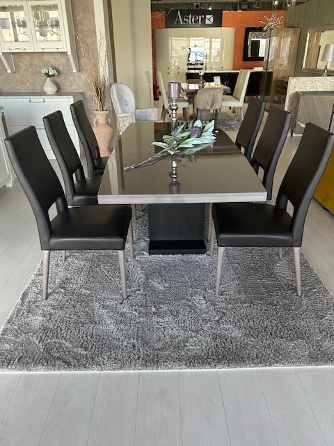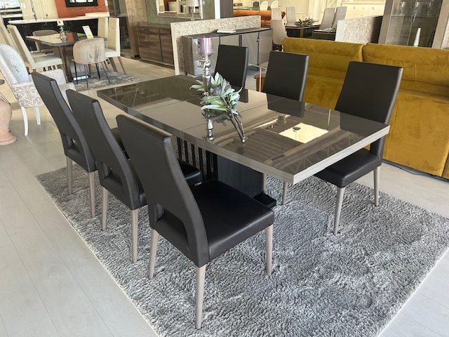 Táto zostava ponúka nielen luxusný vzhľad, ale aj praktické využitie. Rozkladací jedálenský stôl jednoducho prispôsobíte väčšiemu počtu hostí. Preto je ideálny na rodinné oslavy aj bežné stolovanie.